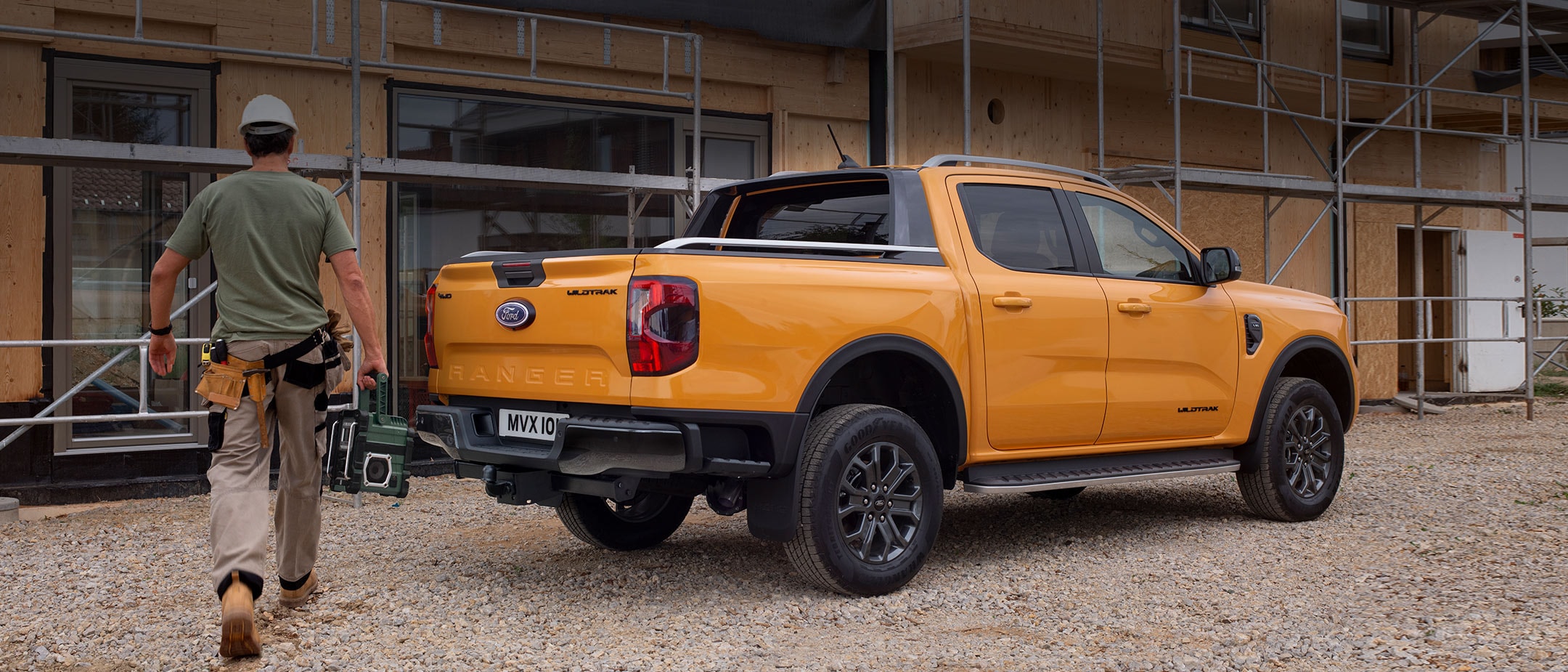 Le nouveau Ford Ranger est plus large que le modèle précédent, ce qui se reflète sur la zone de chargement ; elle est désormais assez large pour accueillir une palette Europe standard entre les passages de roue. De plus, le nouveau moulage du revêtement de la zone de chargement protège mieux celle-ci.